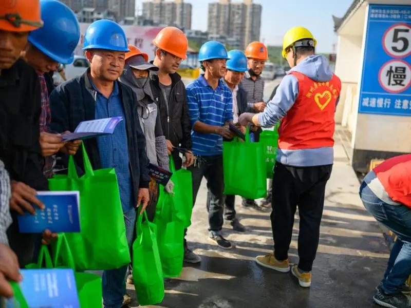 隨后,青年志愿者們現(xiàn)場發(fā)放了《防疫復(fù)工宣傳冊》和《文明施工宣傳冊》等宣傳材料,并就如何預(yù)防疾病、正確佩戴口罩、復(fù)工就餐防疫指南、文明施工、安全生產(chǎn)等知識給務(wù)工人員進(jìn)行了講解,加深了務(wù)工人員對防疫知識和文明施工知識的了解。